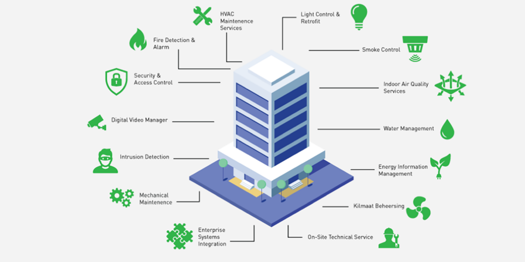 Integrated Building Management Systems that monitor and control HVAC, lighting, and utilities for improved efficiency and performance.
